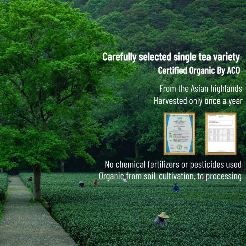 Our 4A+ Organic Ceremonial Matcha is crafted from the finest first-harvest tea leaves, meticulously sourced from certified organic tea gardens and premium tea tree varieties. Every step of the process is dedicated to preserving its organic integrity, resulting in an exceptionally smooth and pure flavor profile